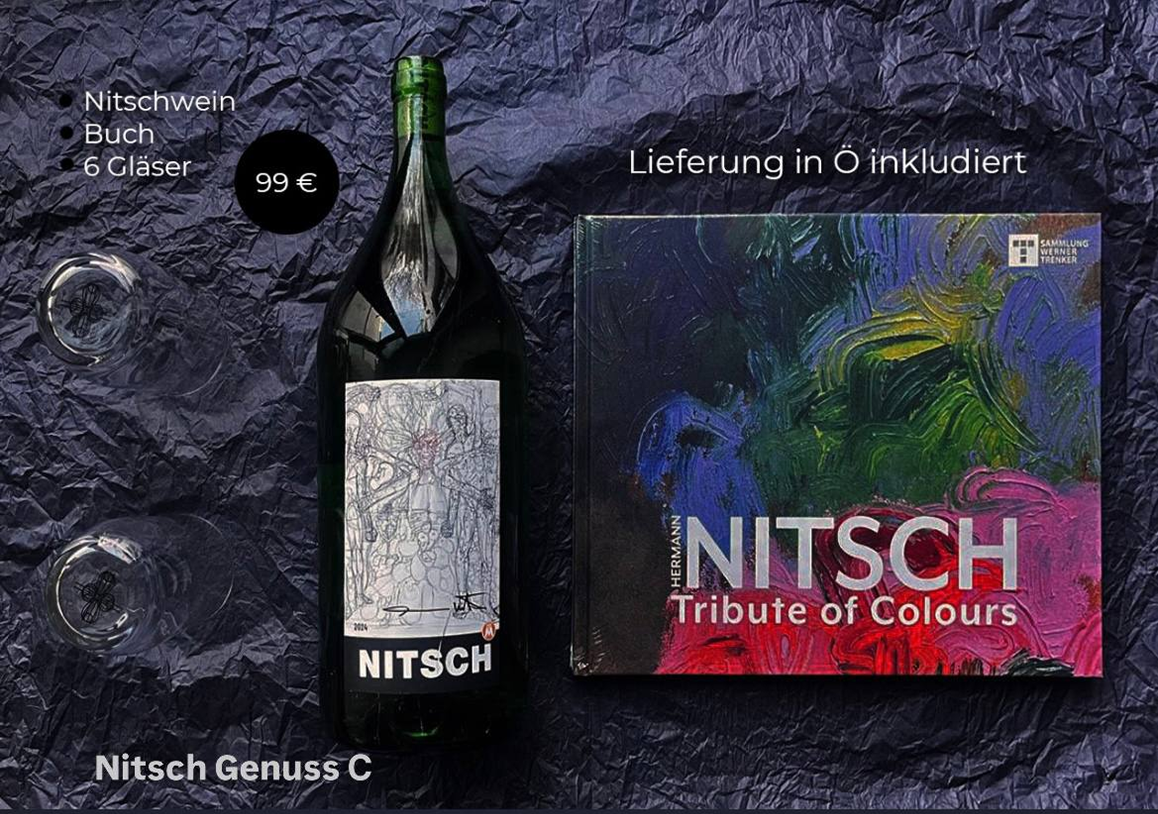 Der Wein von Hermann Nitschs Weingarten in der Doppler 2lt Flasche „naturbelassen mit rescher Säure“ zum leichten Genuss.