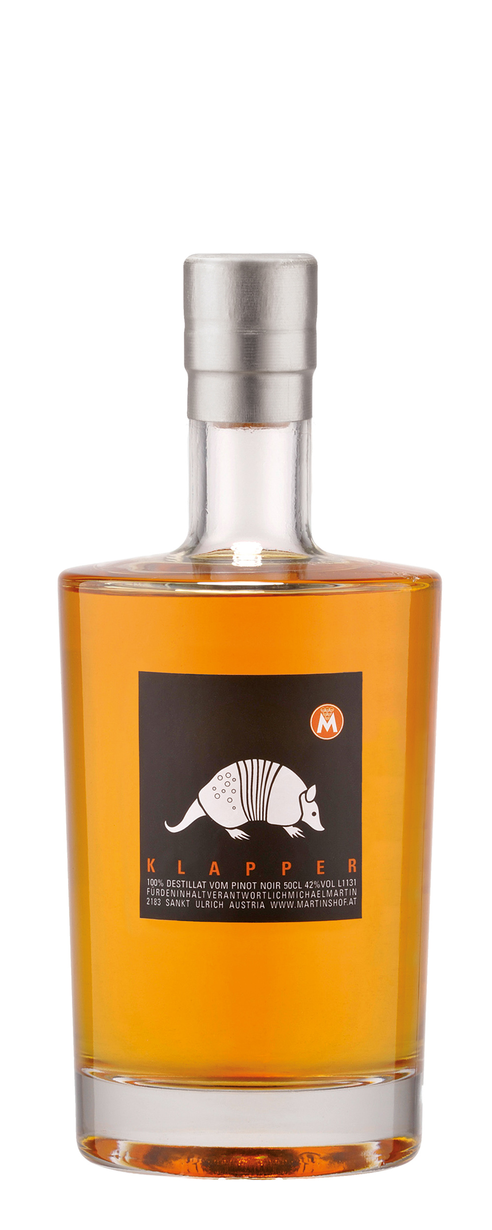 100% Destillat vom Pinot Noir Trester, über Jahre im kleinen Eichenfass gelagert.